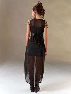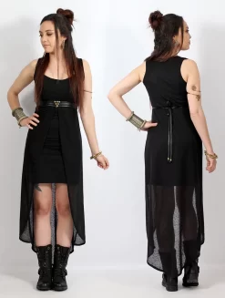 Robe Sans Manches Courte Devant Et Longue Derrière « Marrakech », Vert Canard Et Noir