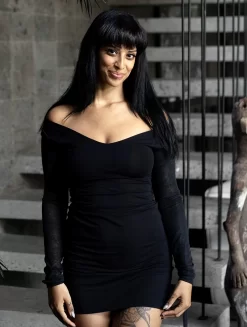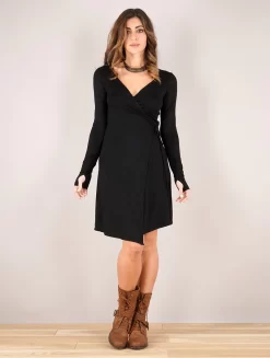 Robe Courte Manches Longues Avec Empiècements Transparents « Azmiyäa », Noir Bi-matière
