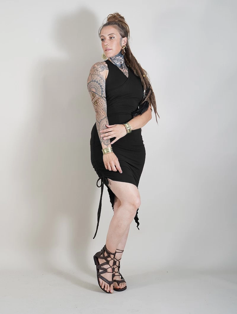 - Tu peux la porter courte, mi longue ou asymétrique grâce aux galons ajustables sur les côtés