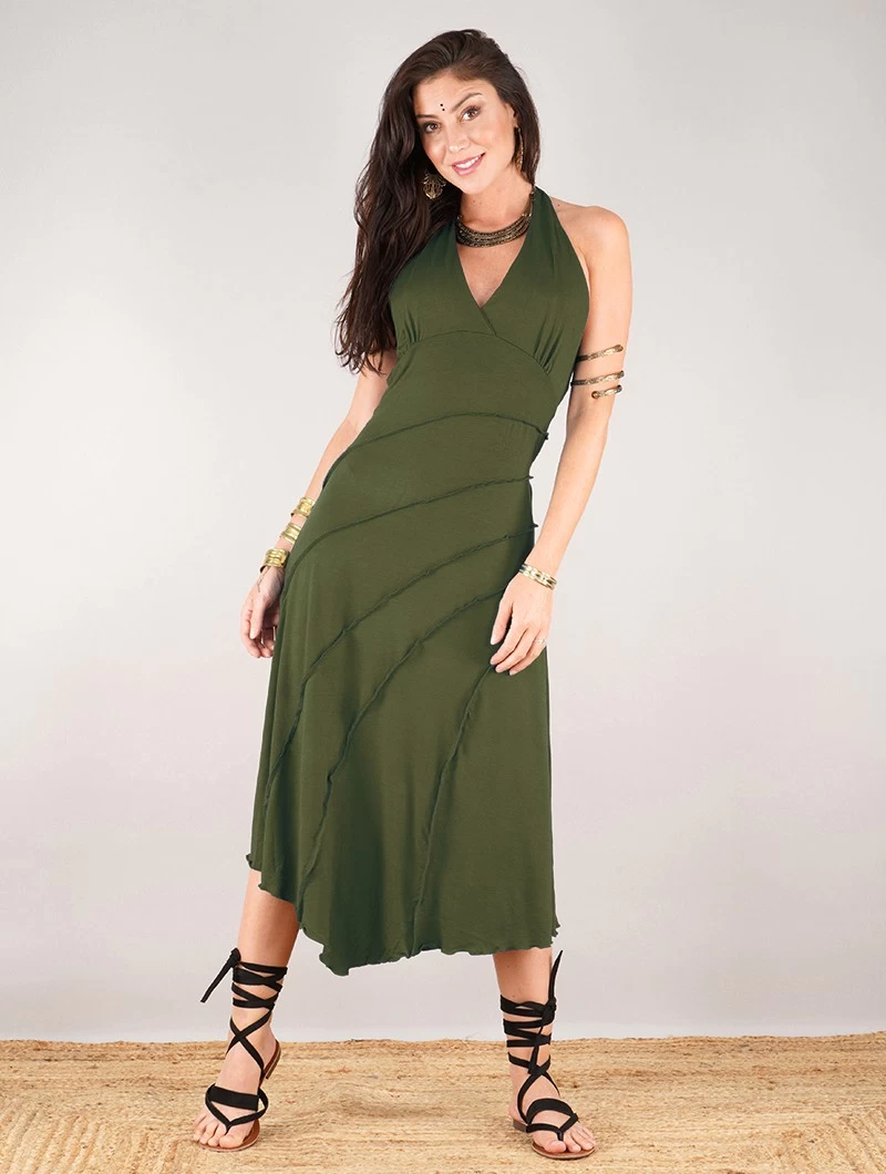 - Robe longue avec un joli design grâce aux surpiqûres et plis cousus !