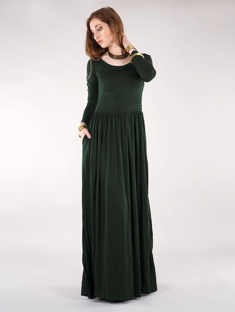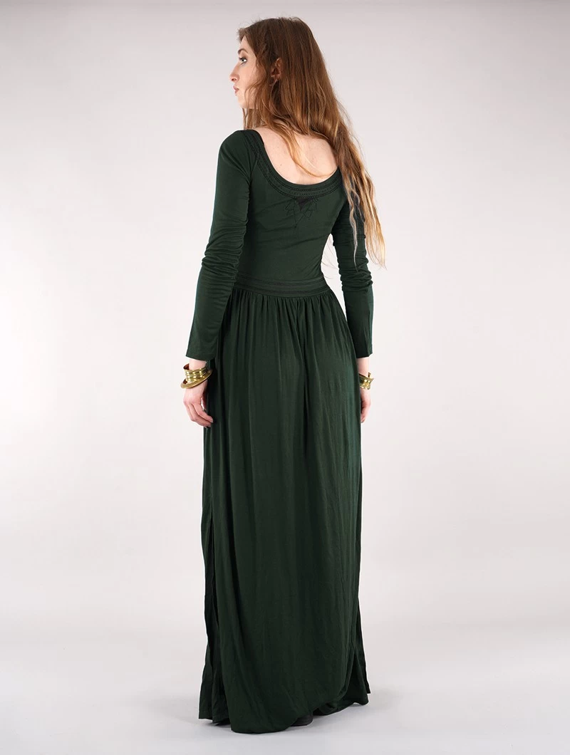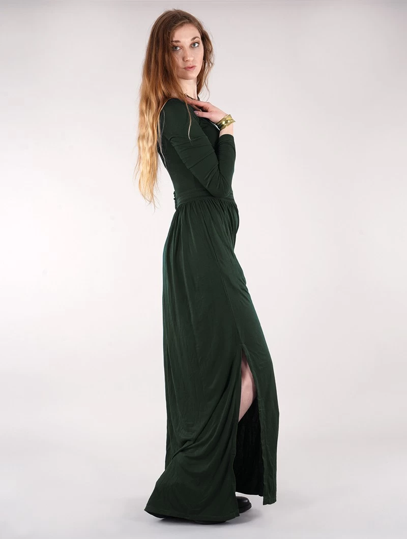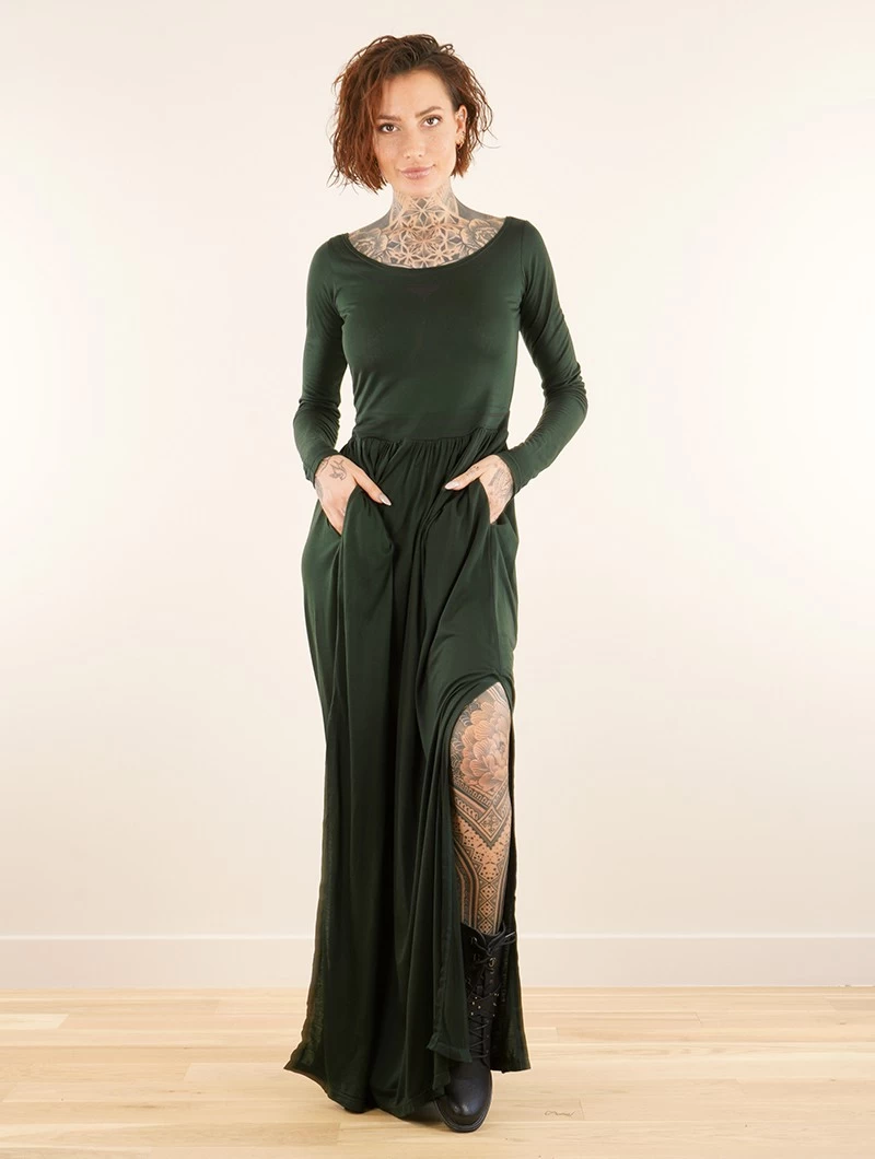 Robe Longue à Manches Longues « Lotus Artanis », Vert Forêt
