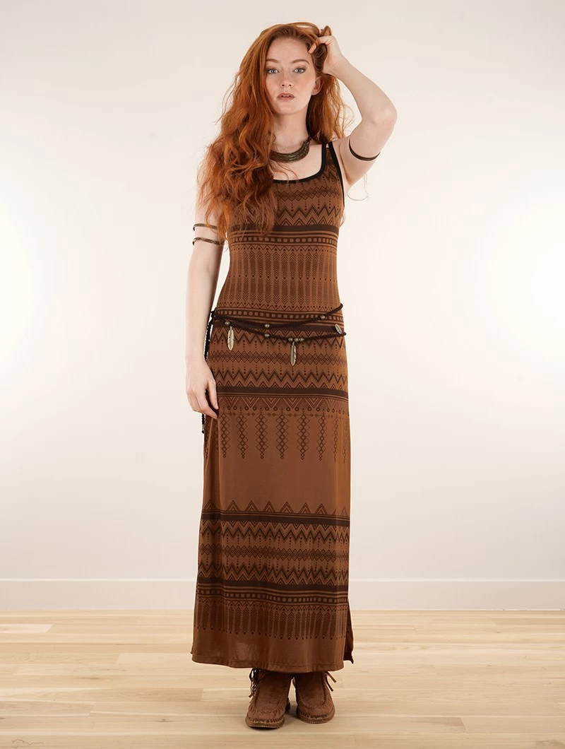 Robe longue tattoo à doubles bretelles “Electra Aztec” by Gado Gado :