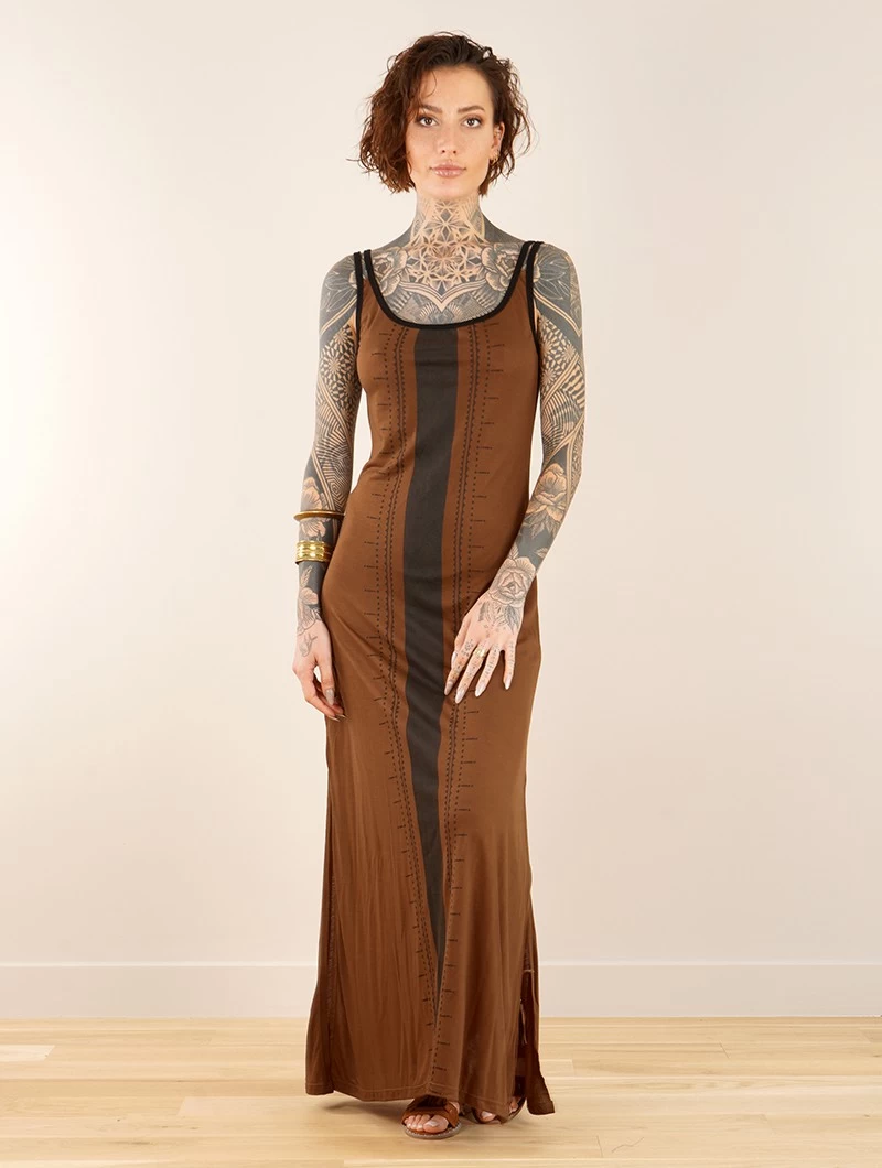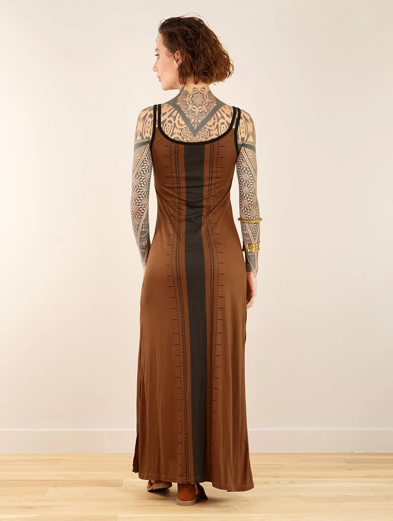 Robe longue tattoo à doubles bretelles “Electra Umbas” by Gado Gado :