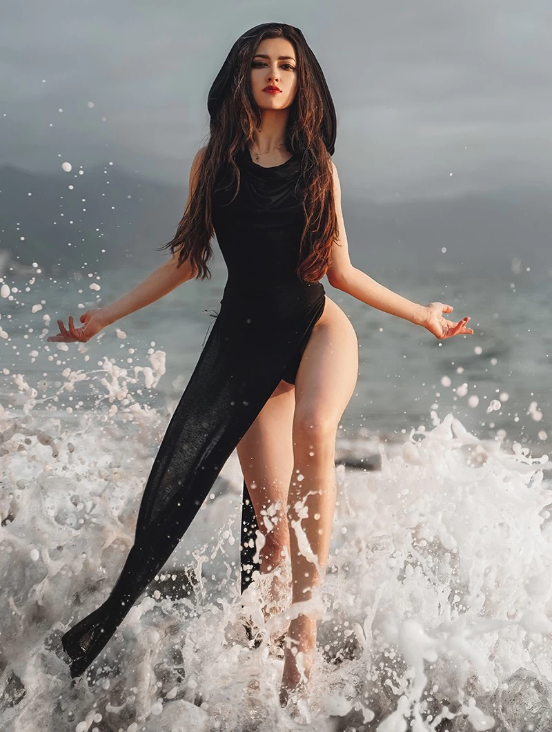 - Fendue de chaque côté de la robe