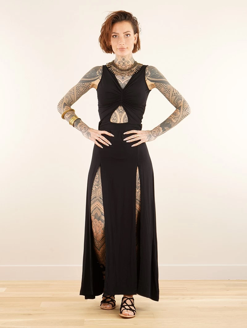 - Élégante robe longue fendues des deux côtés pour laisser entrevoir tes jambes