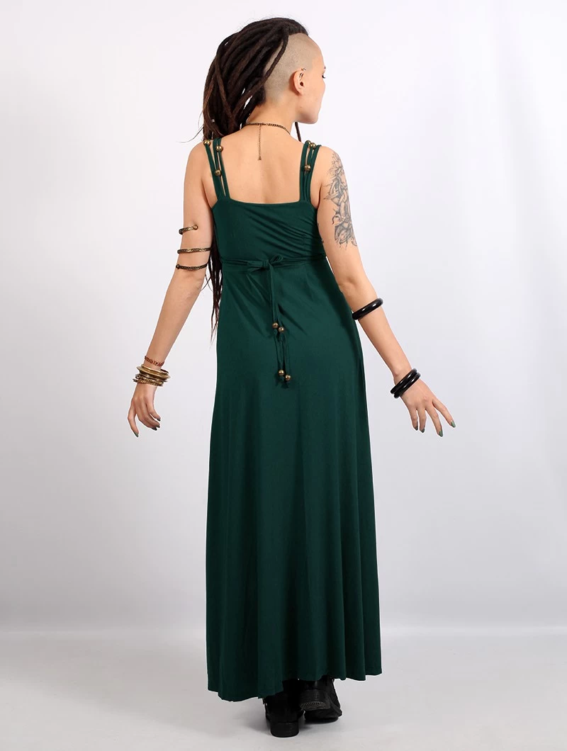 - Bretelles et ceinture intégrée à triple lanières décorées de nombreuses perles en laiton
