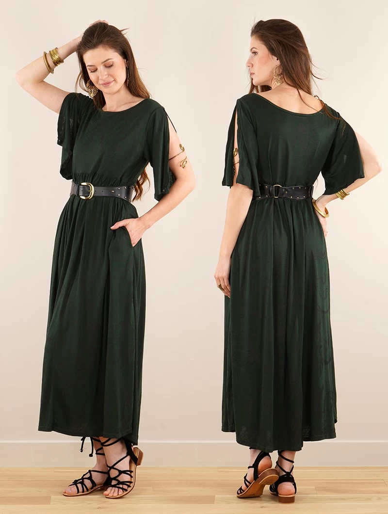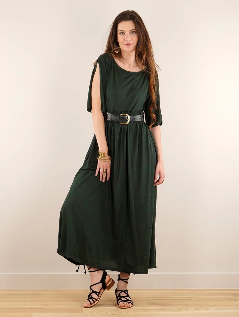 - Jolie robe longue maxi avec manches courtes amples et large encolure ronde