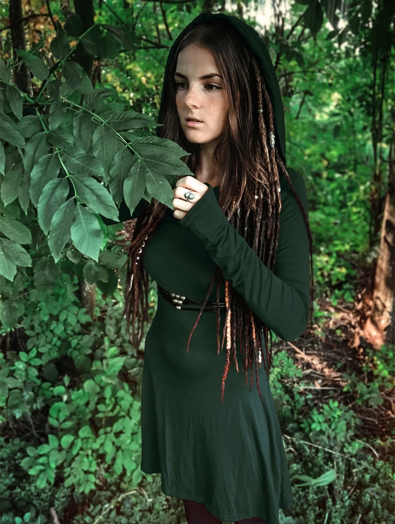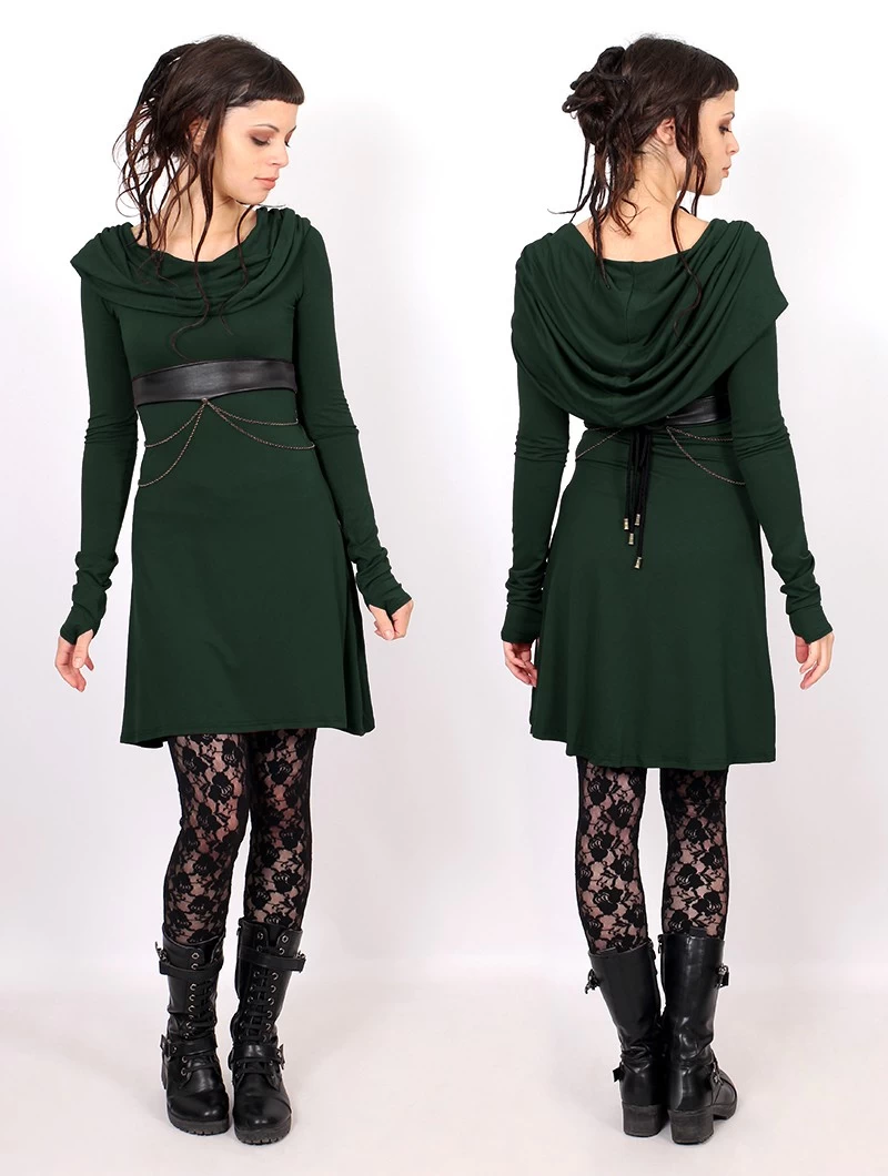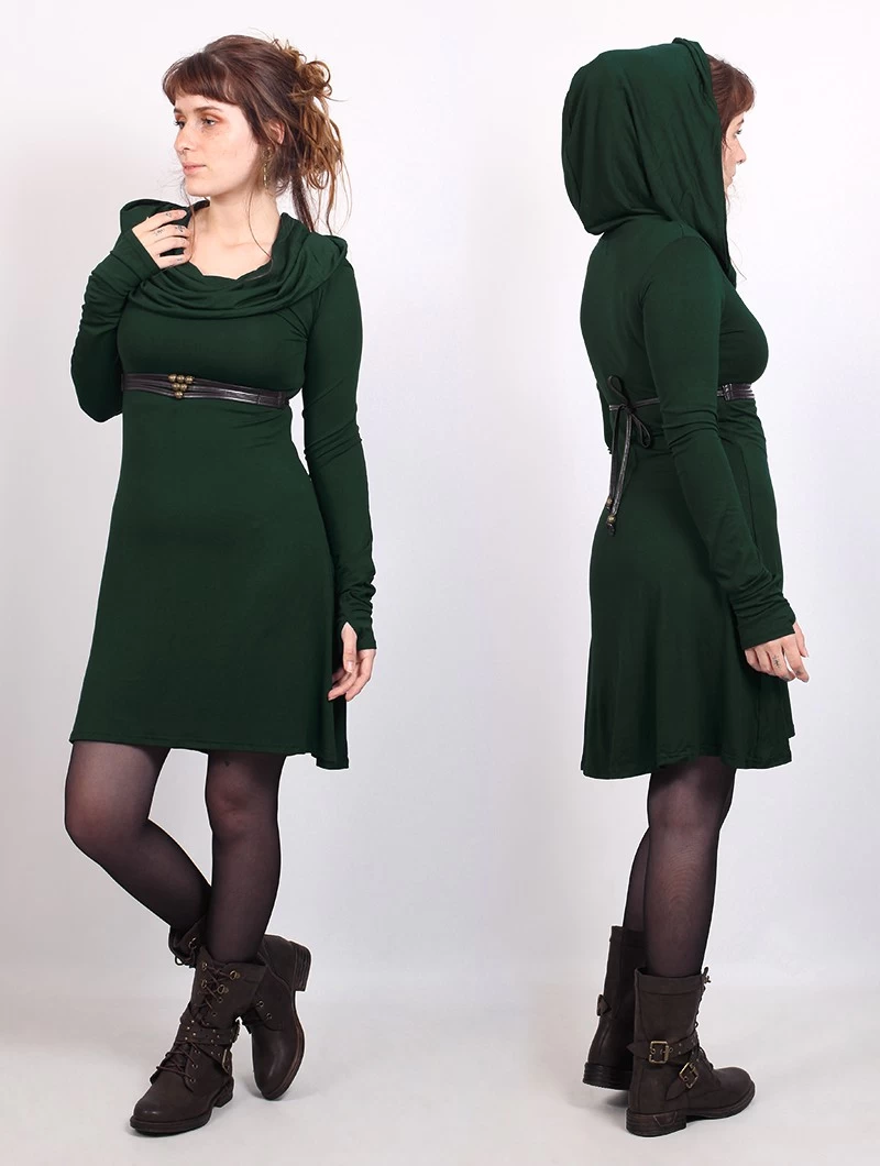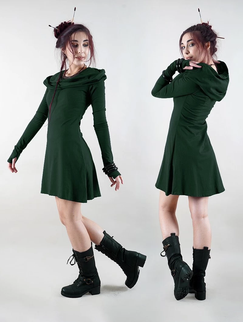 Robe Manches Longues à Capuche « Chryzz », Vert Forêt
