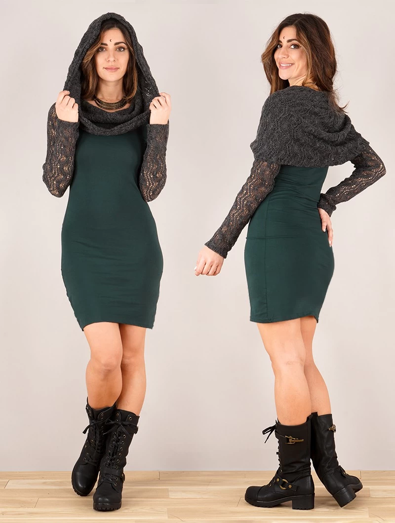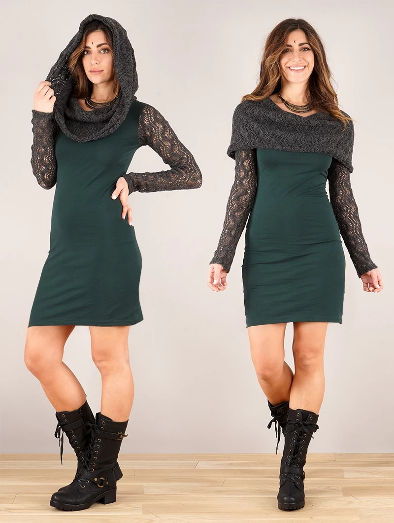 - Jolie robe à manches longues et large col capuche qui peut être mis élégamment sur les épaules