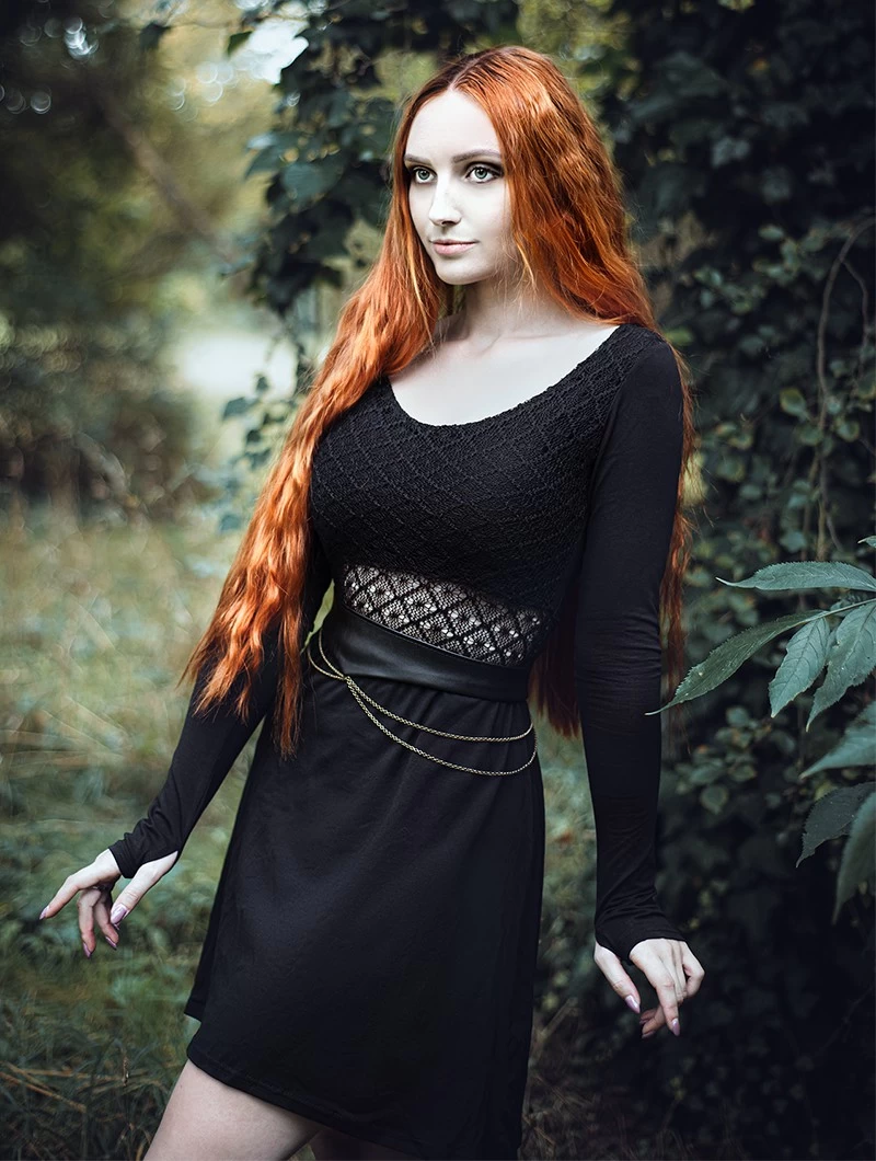 - Bi-matière : tissu plein type jersey avec doublure en dentelle crochet sur le torse et une bande semi transparente non doublée à la taille