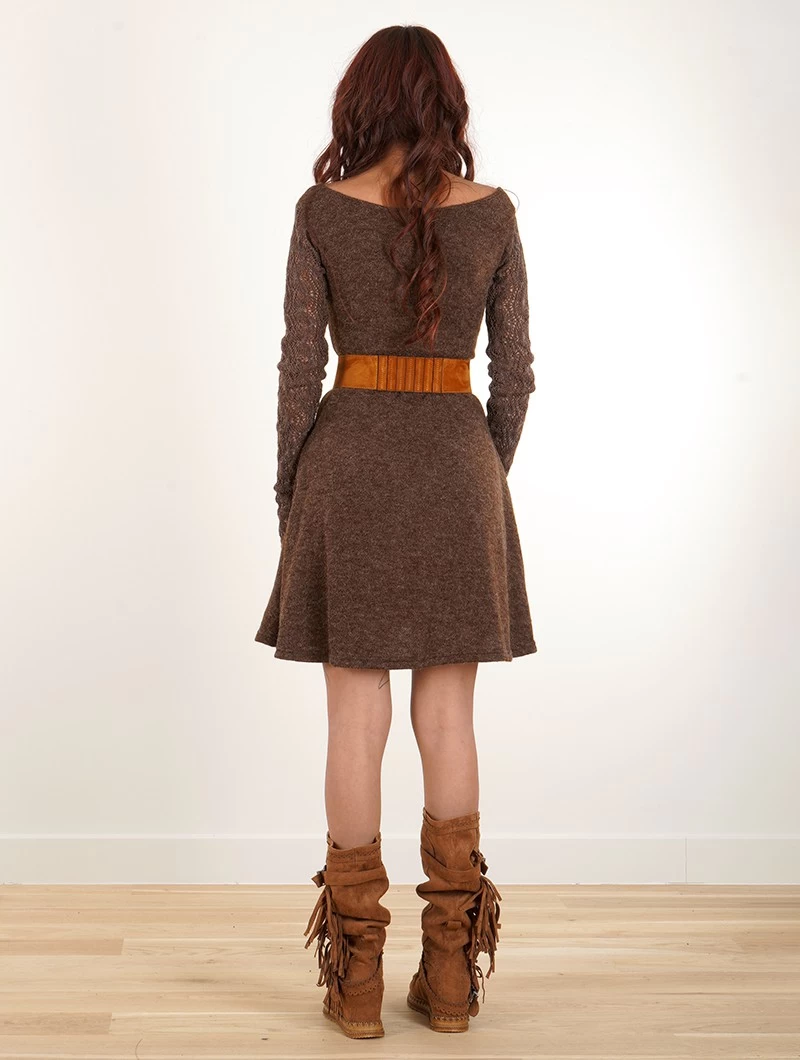 Robe Pull à Manches En Crochet « Oroshï », Marron