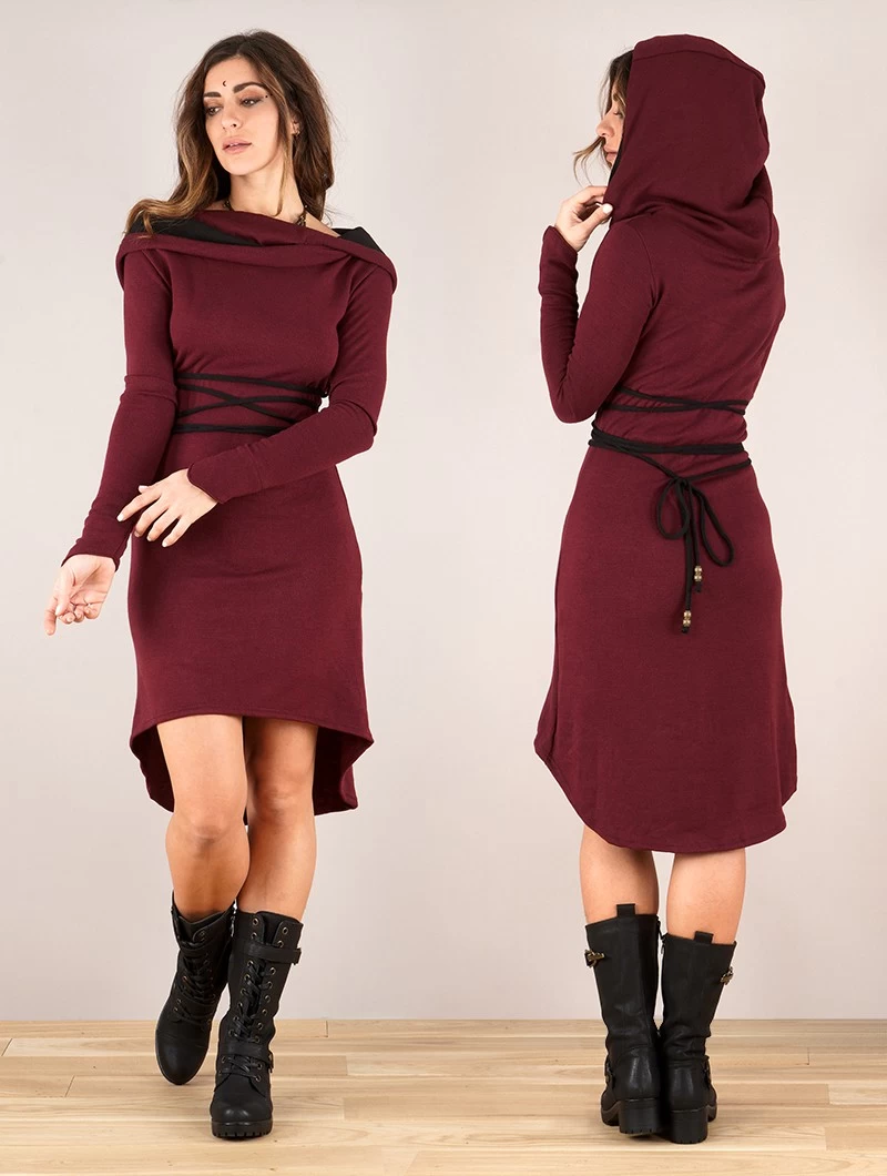 Robe Pull « Käliskä », Bordeaux Et Noir