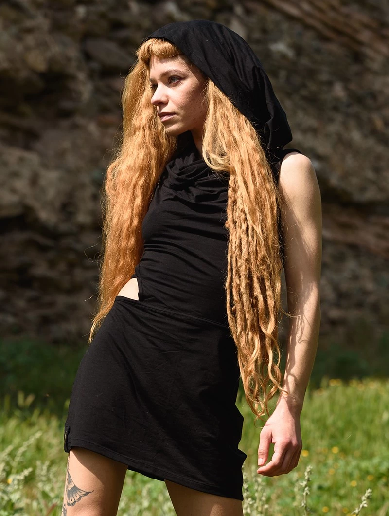 - Superbe tunique sans manches à gros col bénitier plissé avec capuche